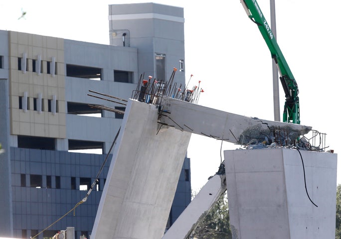 A newly installed pedestrian bridge connecting the campus of Florida International University with the city of Sweetwater, west of Miami, collapsed March 15, 2018, crushing cars on the roadway below and resulting in at least six deaths, according to Miami-Dade Fire Chief Dave Downey.
